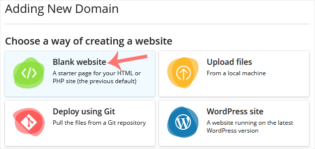 4. Escolha Site em branco como opção.